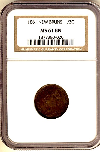 New Brunswick 1861 ½¢ NGC MS61BN. Sharp strike.
