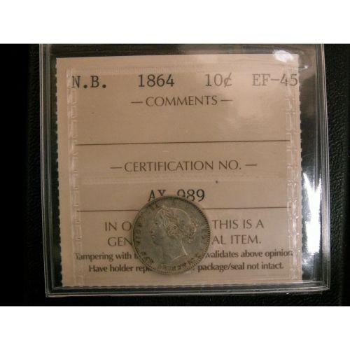 New Brunswick 1864 10¢ ICCS EF45, a well struck e
