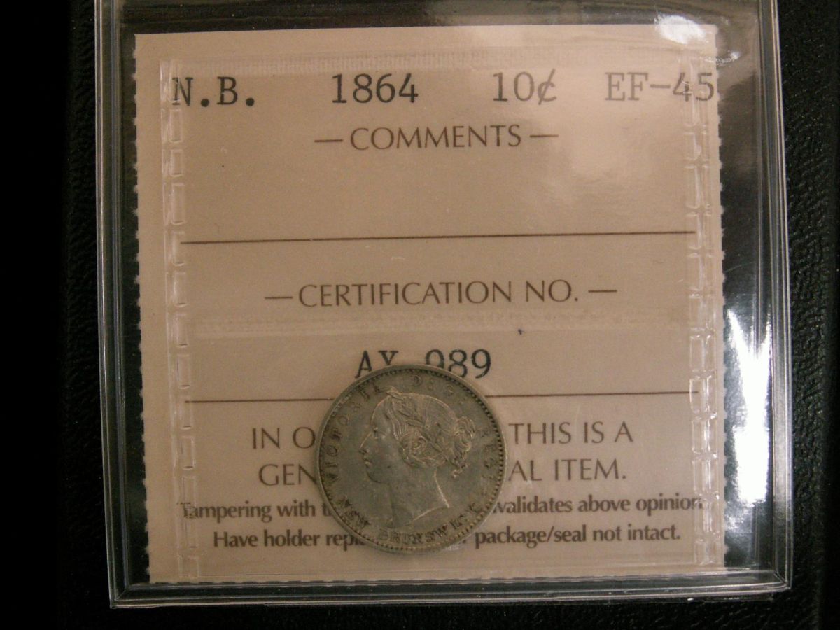 New Brunswick 1864 10¢ ICCS EF45, a well struck example
