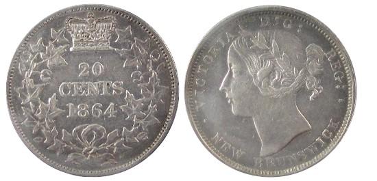 New Brunswick 1864 20¢ ICCS EF40.