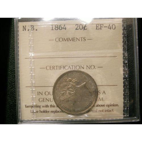 New Brunswick 20¢ 1864 ICCS EF-40, lightly to