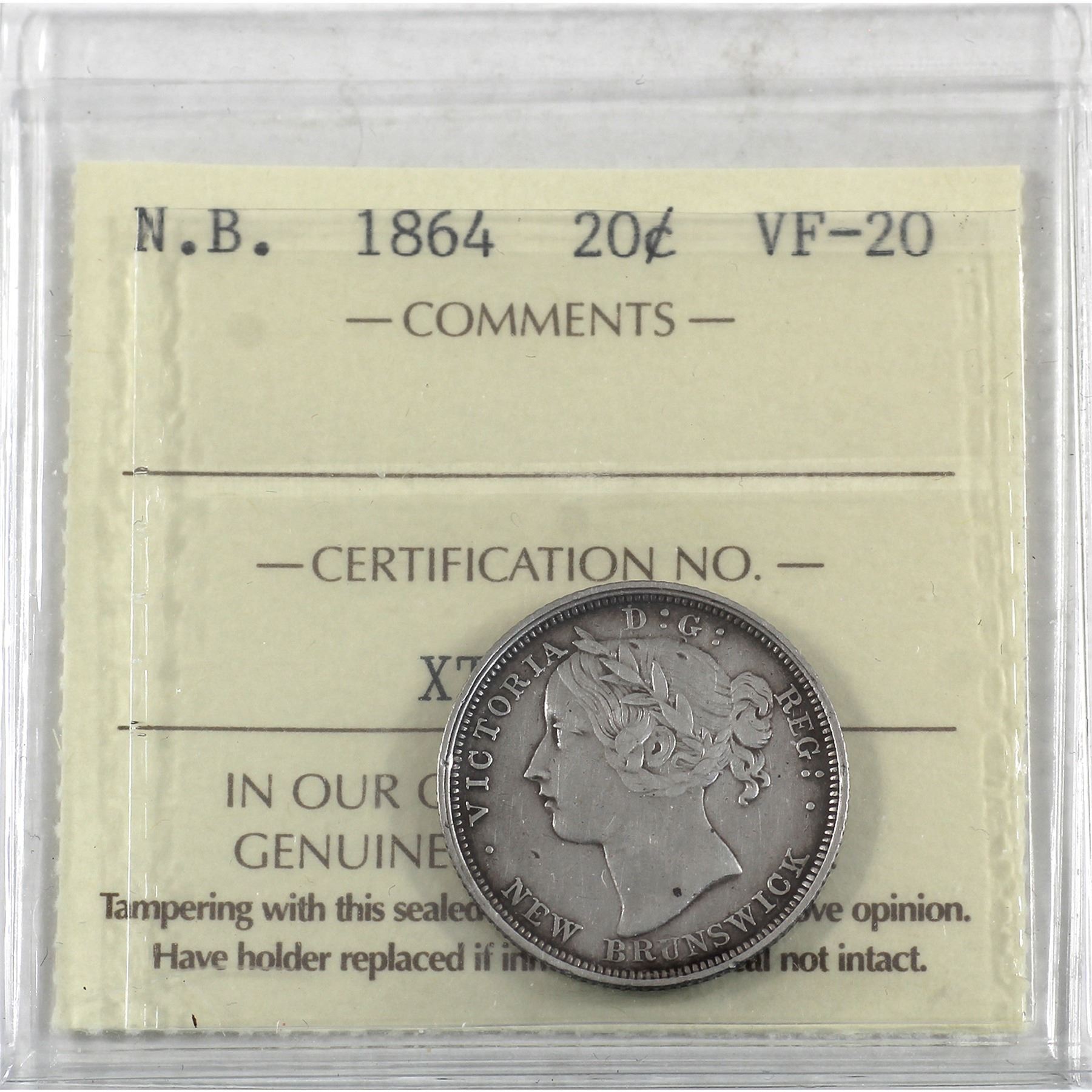 New Brunswick 20-cent 1864 ICCS Certified VF-20.