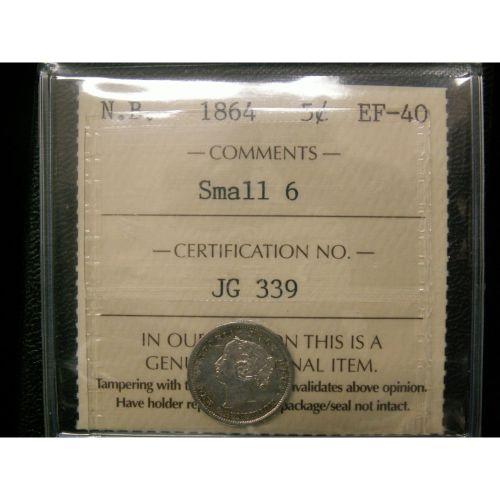 New Brunswick 5¢ 1864 Small "6" ICCS EF-40PQ+, brilliant with nice luster