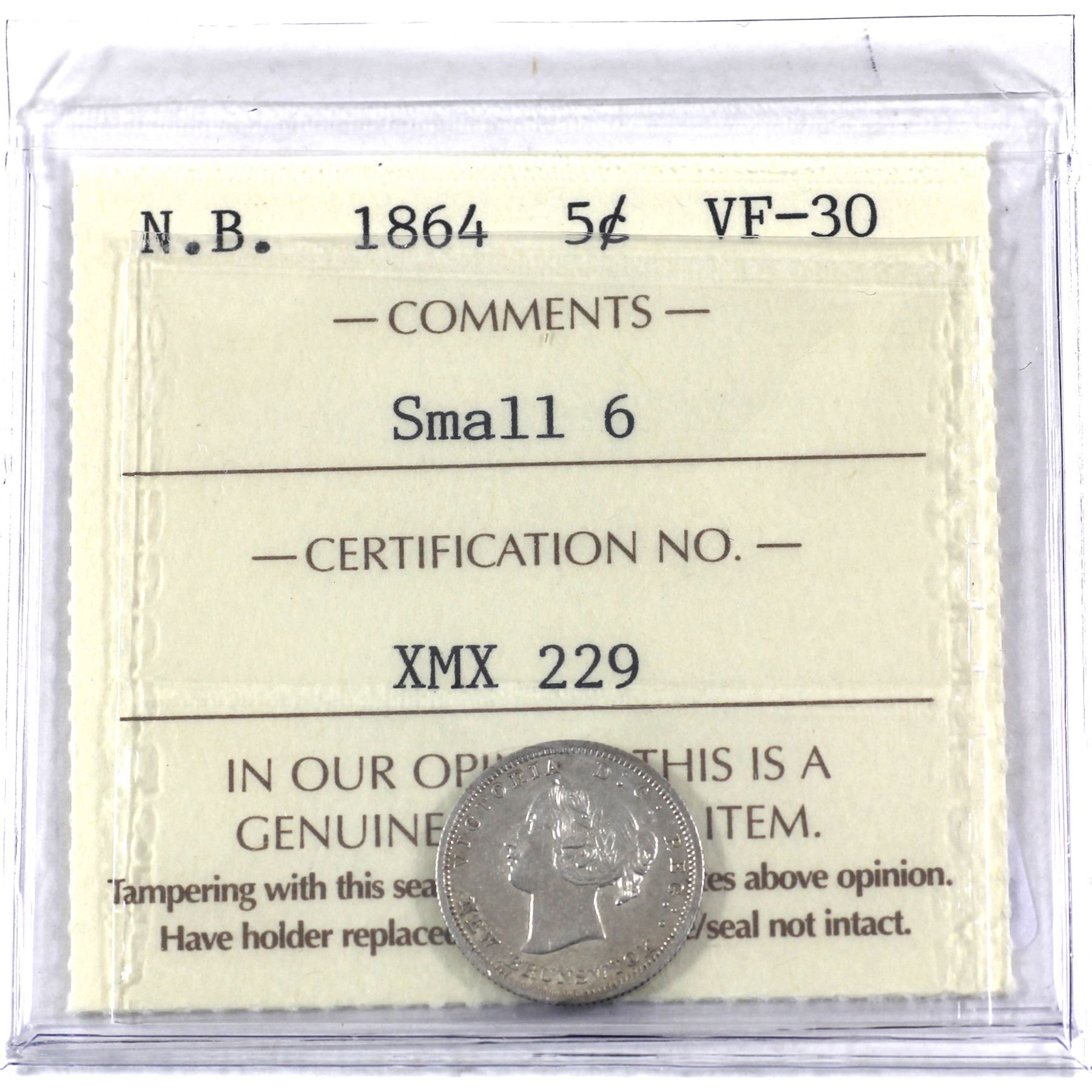 New Brunswick 5-cent 1864 Small 6 ICCS Certified VF-30