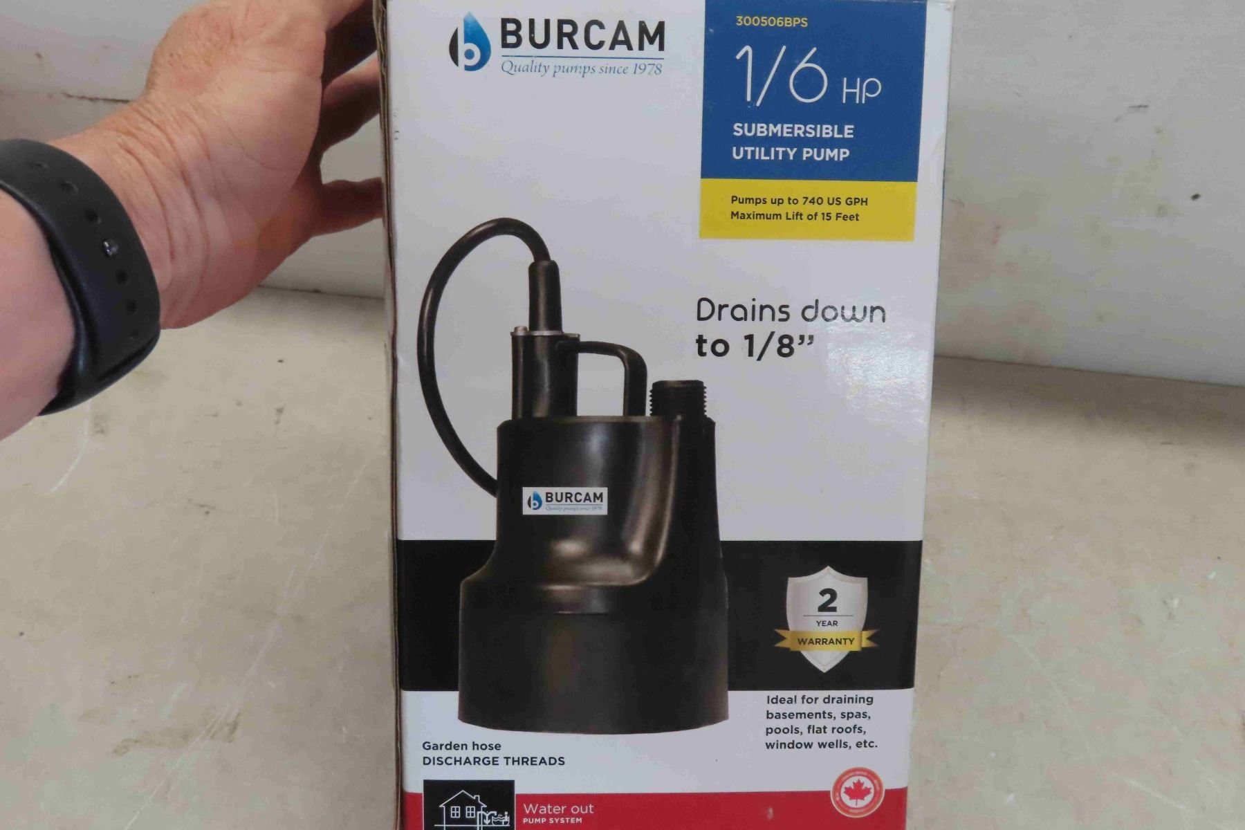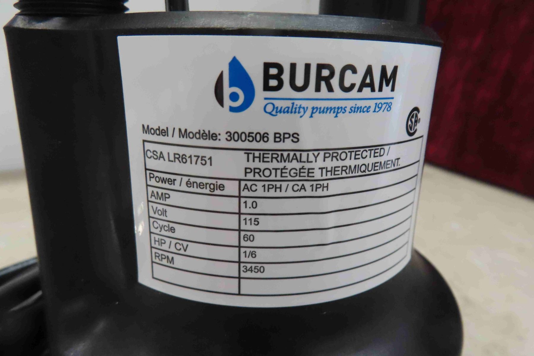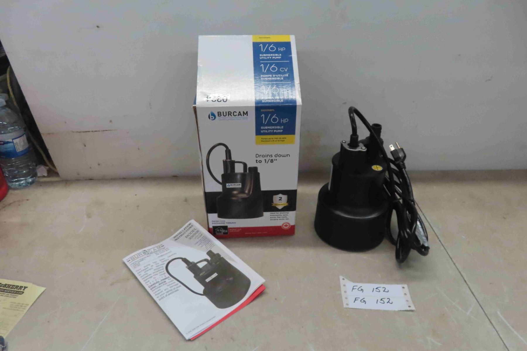 New Burcom 1/6 HP Submersible Utility Pump