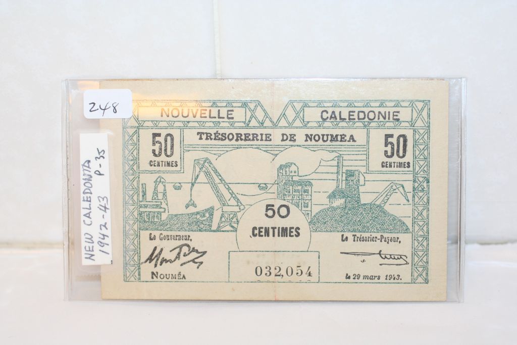 This lot is a 1942-43 new caledonia 50 centimes note