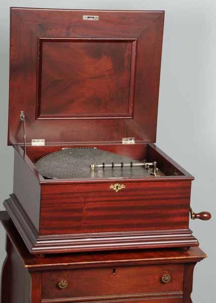 Description Refinished. Mahogany. Includes 10 discs. One repaired comb. Working. Size 15".