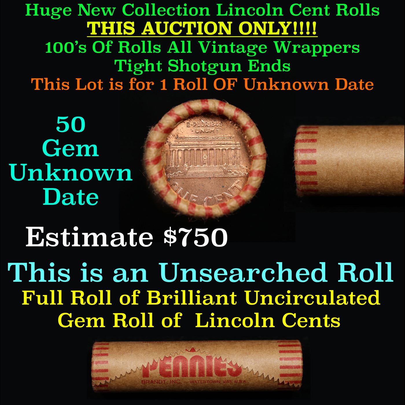 New Consignee This Auction Only!!! Shotgun Lincoln 1c roll, Unknown 50 pcs Brandt Wrapper.