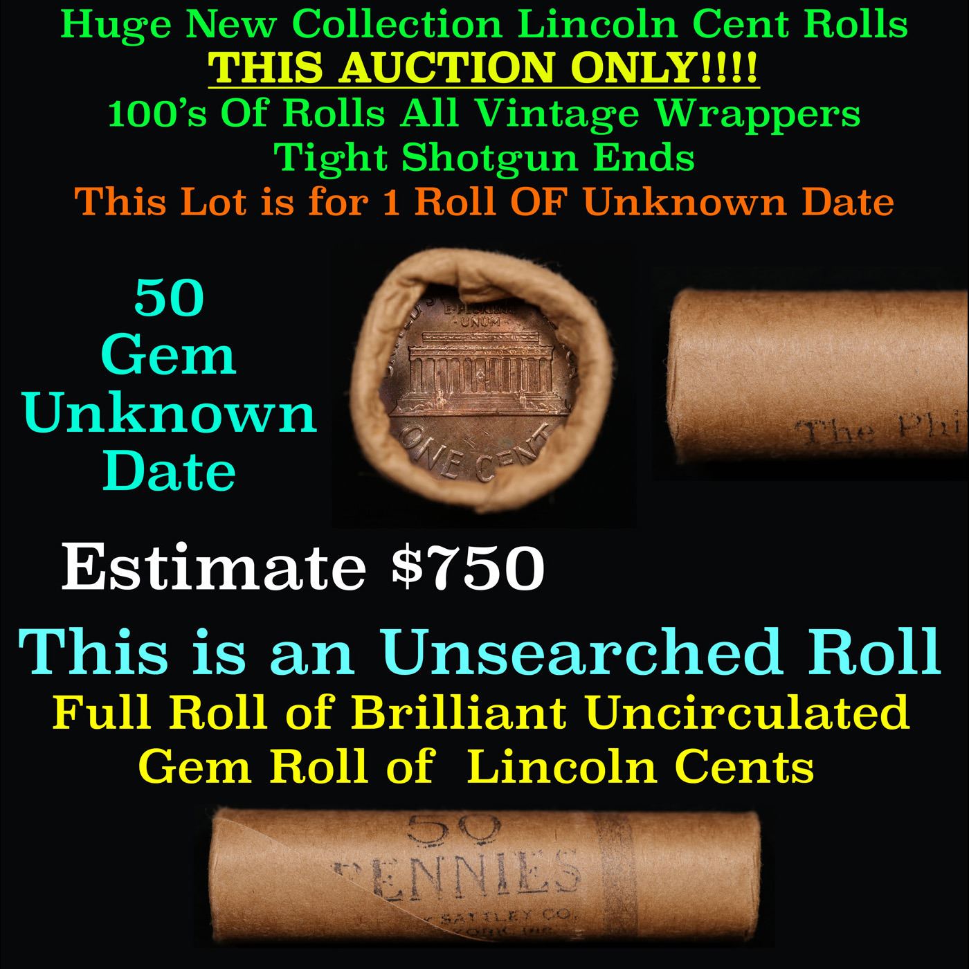 New Consignee This Auction Only!!! Shotgun Lincoln 1c roll, Unknown 50 pcs Philadelphia National Ban