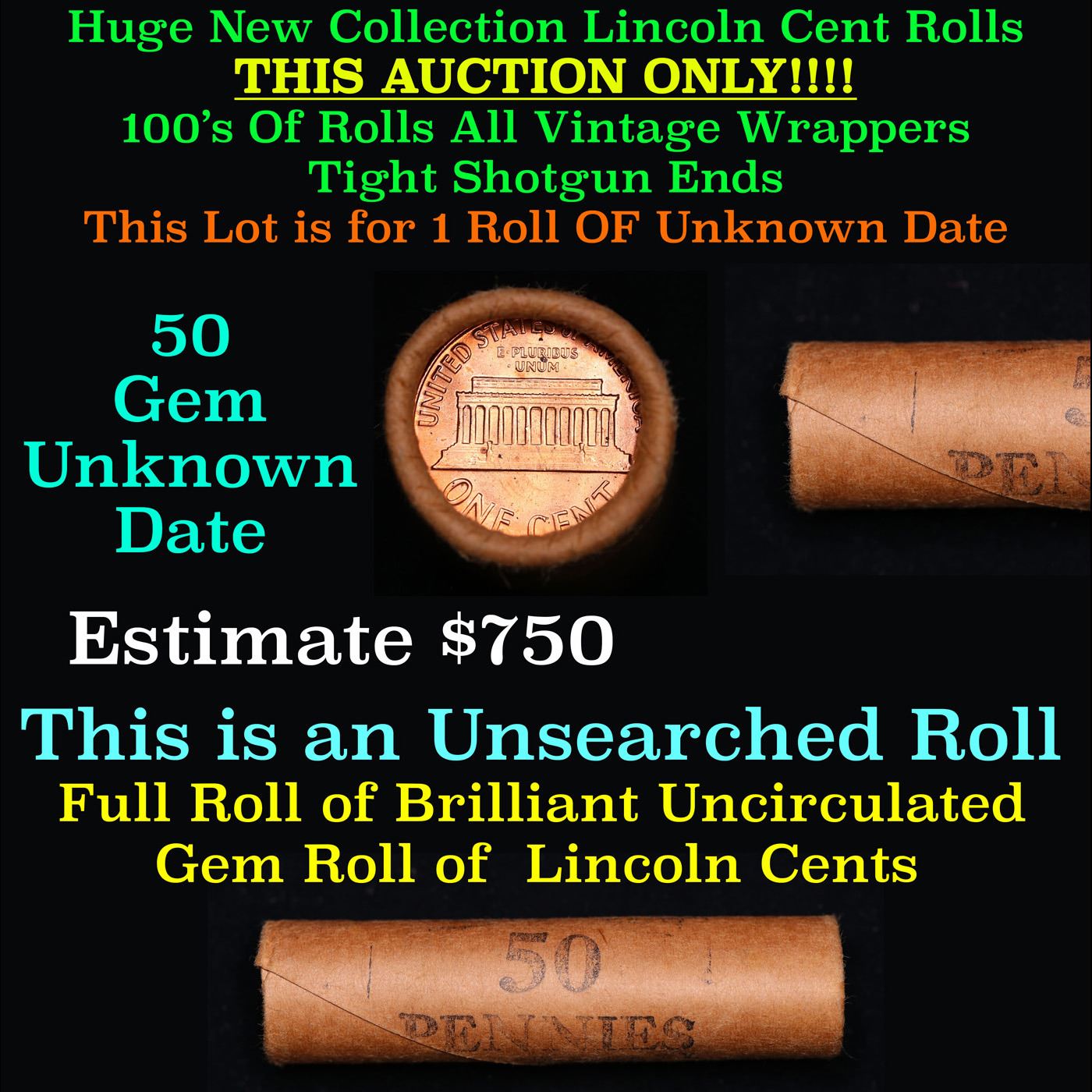 New Consignee This Auction Only!!! Shotgun Lincoln 1c roll, Unknown 50 pcs Standard Johnson Wrapper.. For This Auction Only We Have A New Private Collection Of Lincoln Cent Roll, All Of the Lincoln Cent Rolls In This auction are from 1 Private Estate. Some Are Marked WIth the date Some Are not We Are Selling Them As Is. All Have Tight ends and are in intresting Wrappers!!!. Limited Quantity THIS AUCTION ONLY!!!!. A terrific Shotgun roll of Lincoln cents. Most if not all coin should be cherry red.