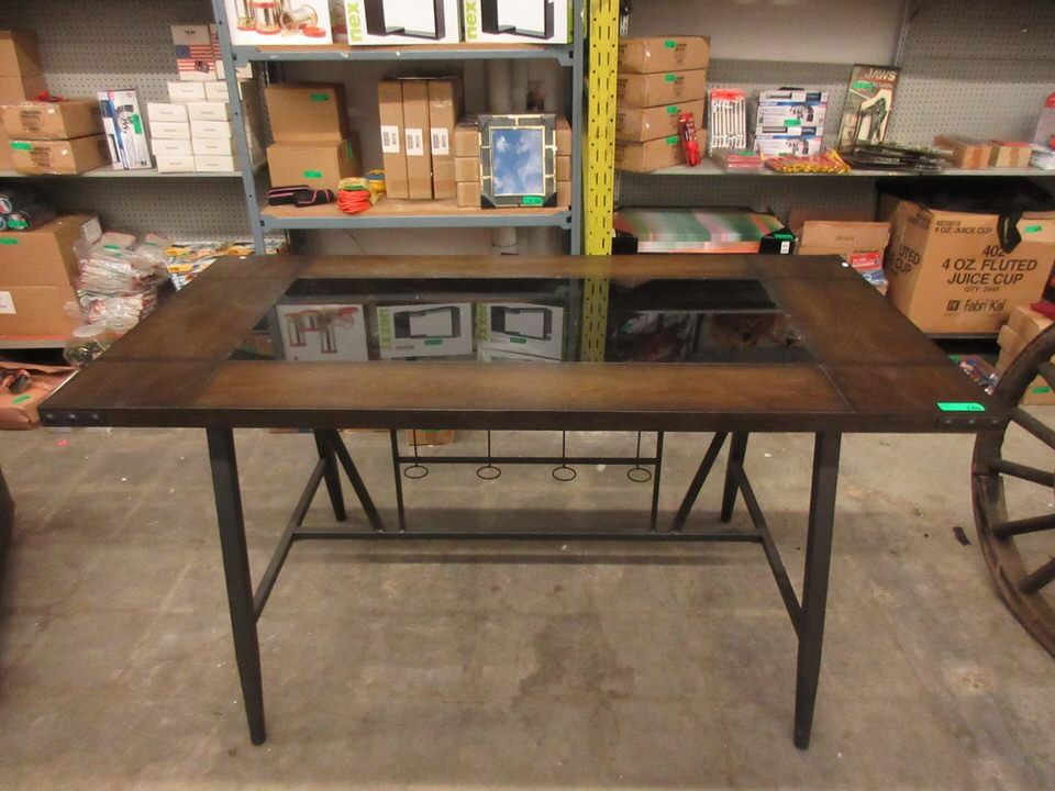 With built-in wine rack. Tempered glass insert. Surface is 36" x 69"