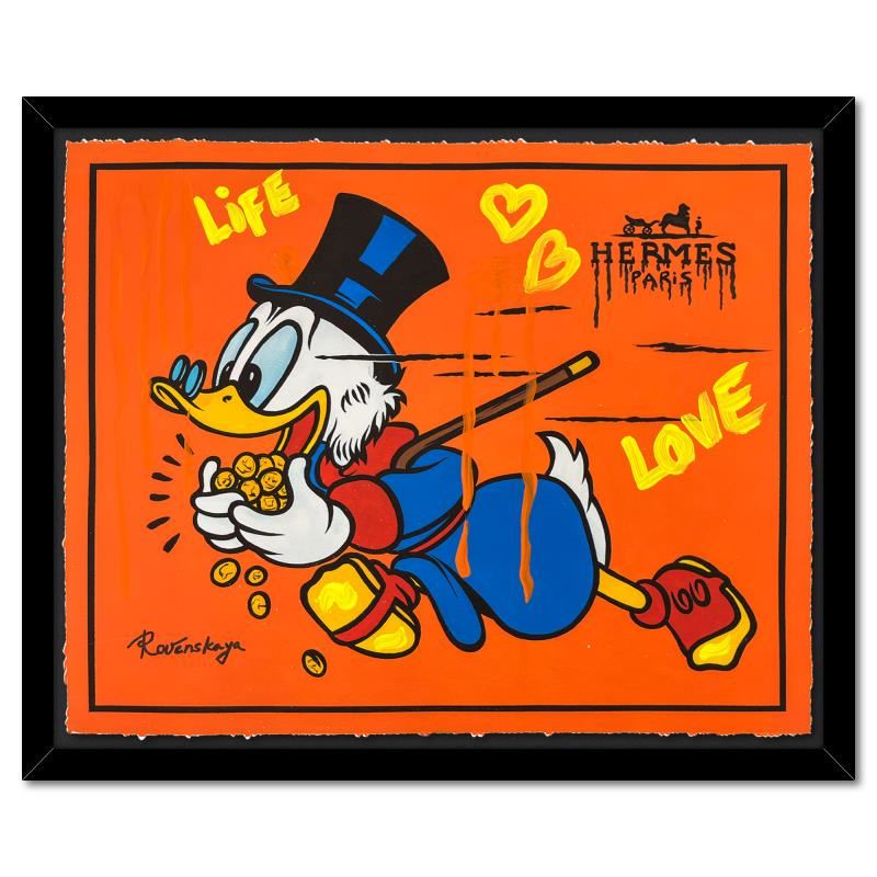 "New Deal" is a one-of-a-kind mixed media on deckle edge paper by Nastya Rovenskaya; hand signed by the artist. This piece comes custom framed and includes letter of authenticity. Measures approximately 36" x 30.5" (framed), 30" x 24.5" (image). This item requires special handling and may have a longer than usual turnaround.