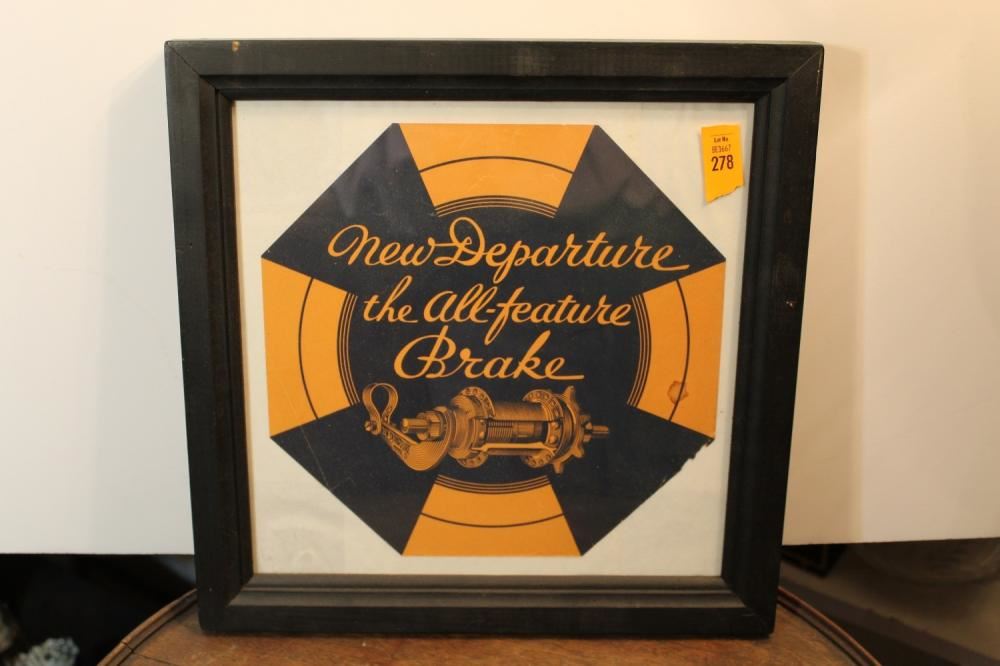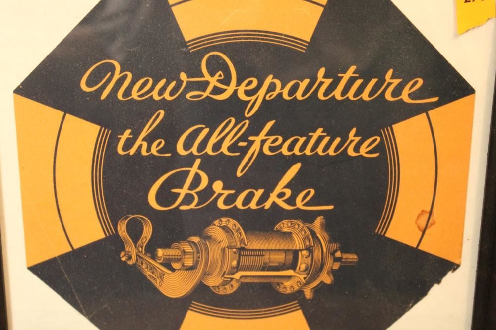 New Departure, Bristol, CT, the All-feature Brake, Framed Advertisement. Approx. 13 inches tall x 12.5 inches wide.