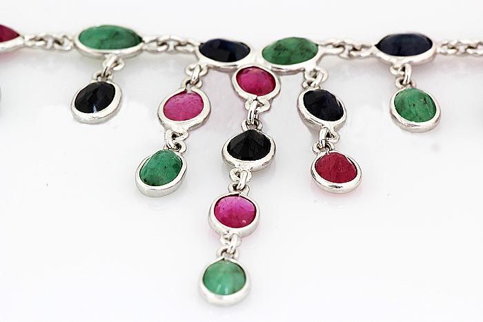 New Design Multi-color 23.04CT Dangles Silver Necklace **|**|** 18" Long Multi-color Gemstone in Bezel Dangles Design Silver Necklace; 38pcs 6x4mm ; MSRP: $1800