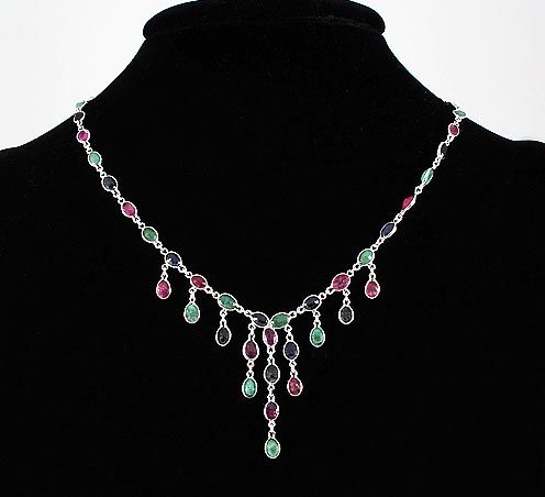 New Design Multi-color 23.04CT Dangles Silver Necklace **|**|** 18" Long Multi-color Gemstone in Bezel Dangles Design Silver Necklace; 38pcs 6x4mm ; MSRP: $1800