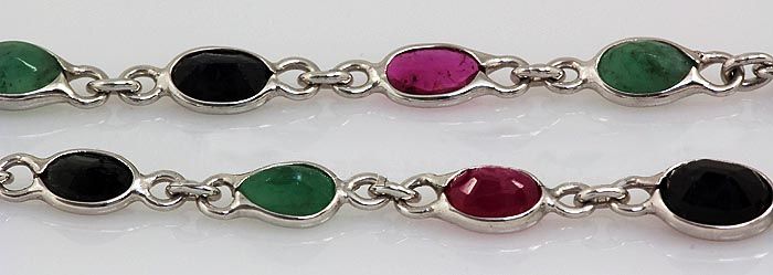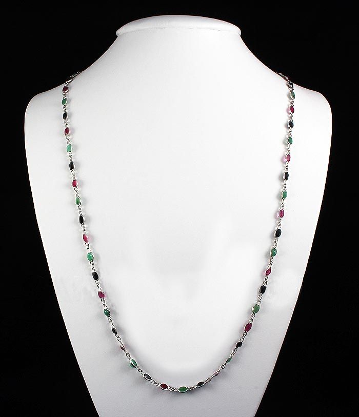 New Design Multi-color 32.68CT Bezel Silver Necklace 8. **|**|** 28in. Long Multi-color Gemstone in Bezel Design Silver Necklace; 57pcs 6x4mm ; MSRP: $2300