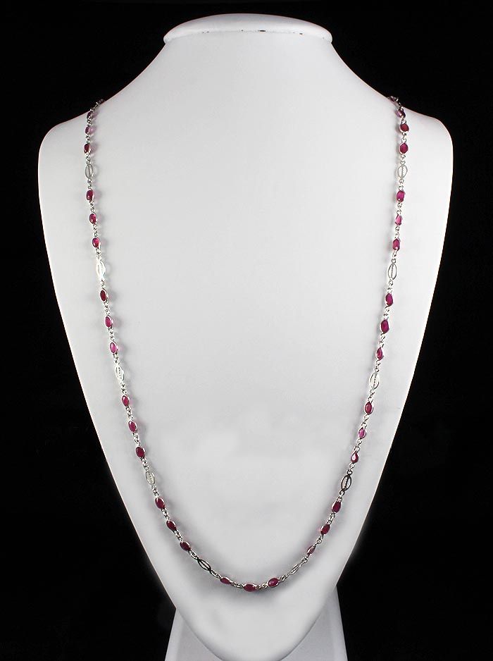 New Design Ruby 45.30CT Silver Bezel Necklace 8.48g **|**|** 34" Long Natural Ruby Gemstone Set in Bezel New Design Link Chain Silver Necklace; 9pcs Pear 5x3mm&42pcs Oval 6x4mm ; MSRP: $3200