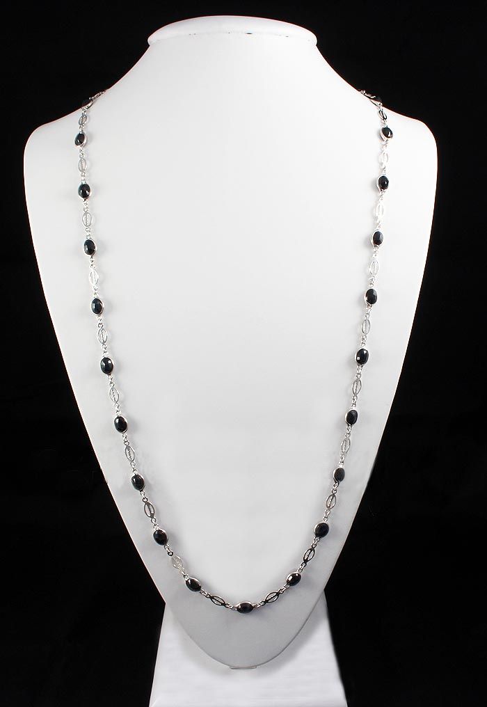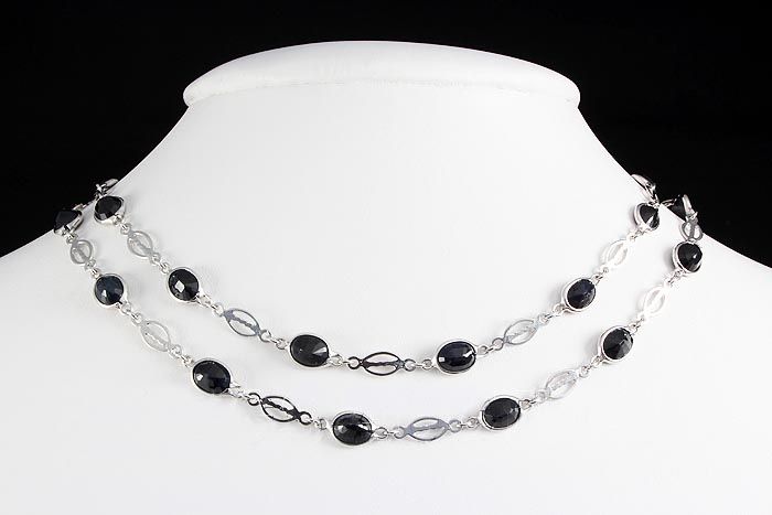 New Design Sapphire 28.00CT Silver Bezel Necklace 18.15 **|**|** 32" Long Bezel Sapphire Corrundum Gemstone in New Fashion Design Silver Necklace; 28pcs 7x5mm ; MSRP: $2800