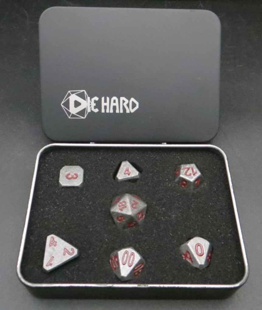 New Die Hard Dice Metal Forge Dice Set Raw Steel With Dark Red Numbers
