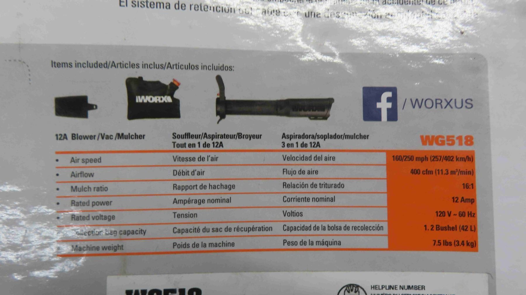 New Electric Worx 12 Amp 3 in 1 Blower/Vac/Mulcher