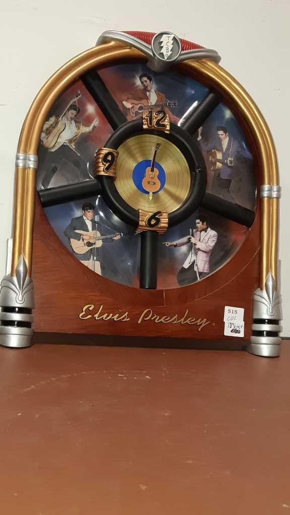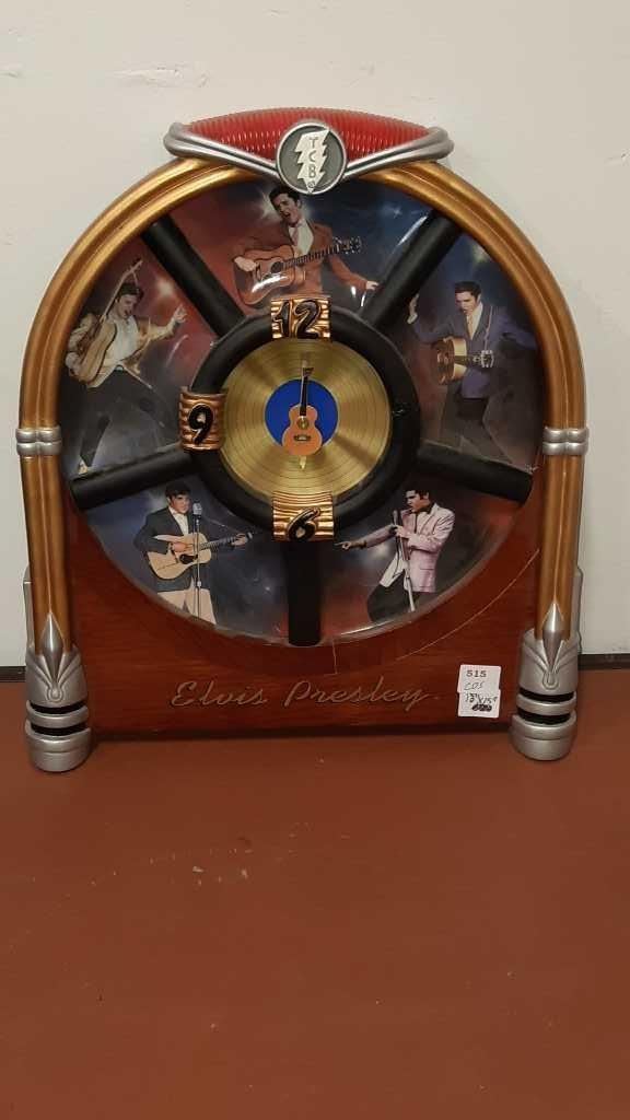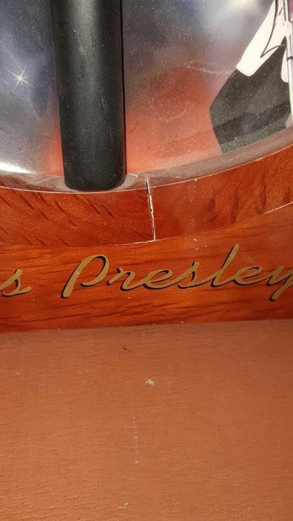 New Elvis Presley wooden serving plate Decor set 13 in by 15 in missing a number 3 in frame and wood crack can hang or stand