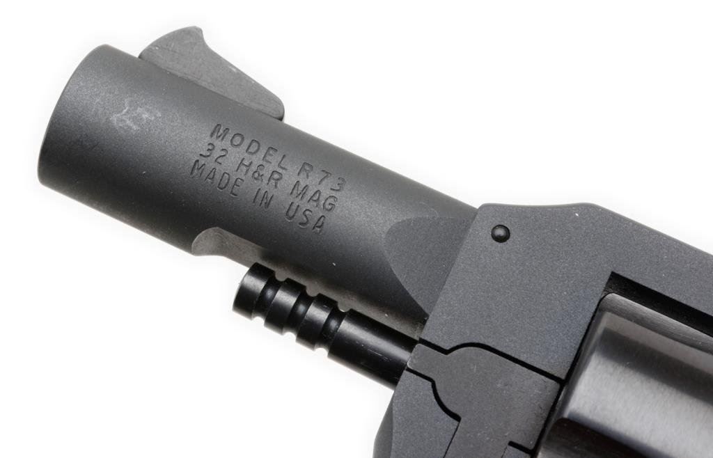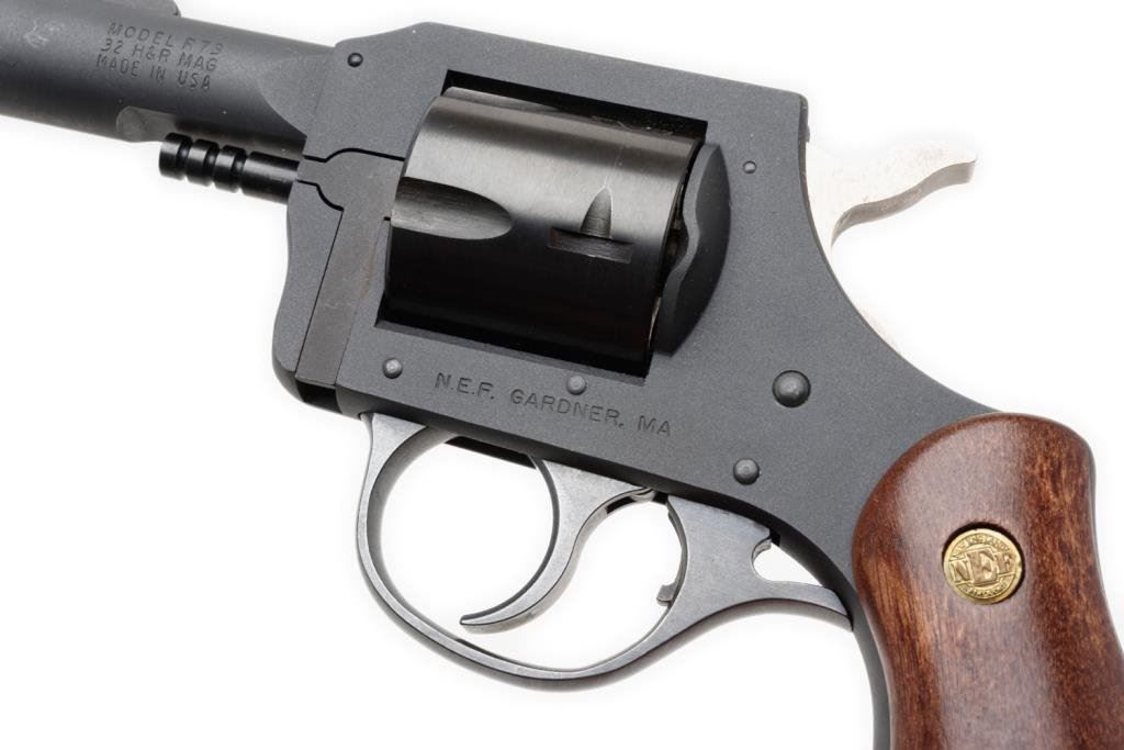 *New England Firearms Model R-73 DA revolver, .32 H&R Mag. caliber, 2.5” barrel, S/N NG004593, mat black finish, wood medallion grips in like new condition. Est.: $100-$175.