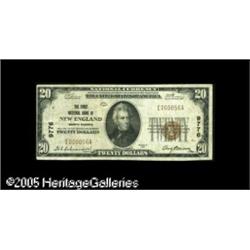 <B>New England, ND</B></I> - $20 1929 Ty. 1 <B>The First NB </B></I> Ch. # 9776<BR>This was the only issuing bank in this Hettinger County locale and its print run for the $20 Type 1 was a scant 96 sheets. This <B>Very Fine</B></I> survivor has plenty of unmolested paper body remaining. Perhaps the only thing one could ask for would be a bit more face margin at left. Lot:16945