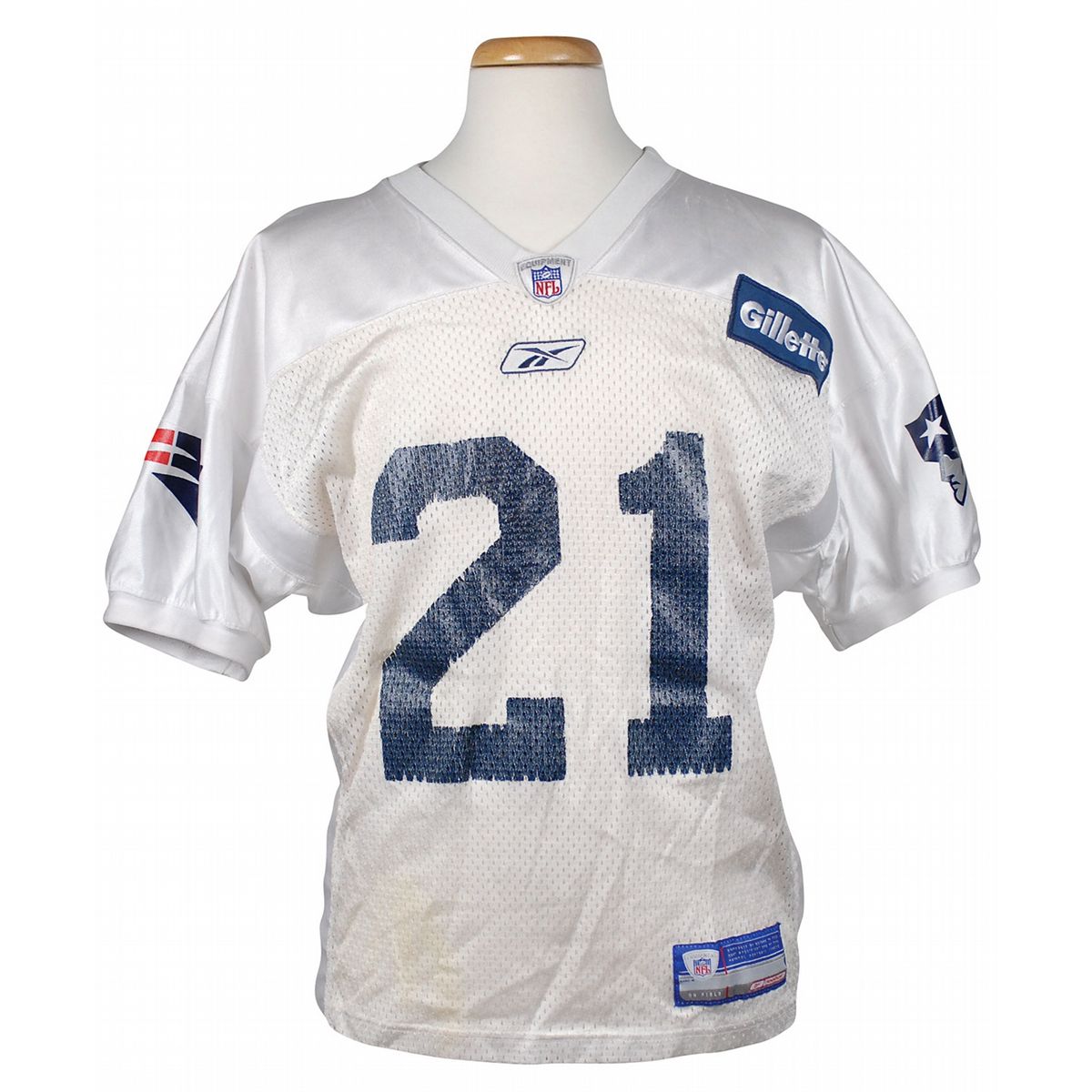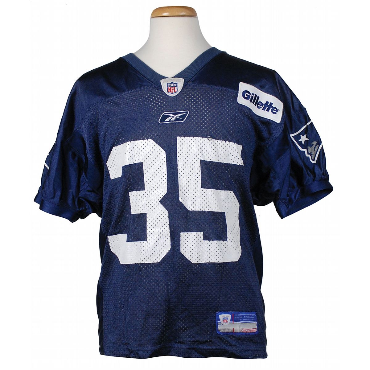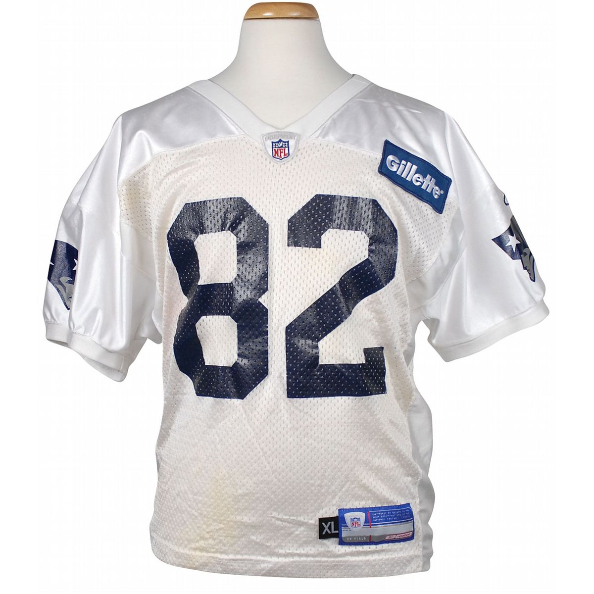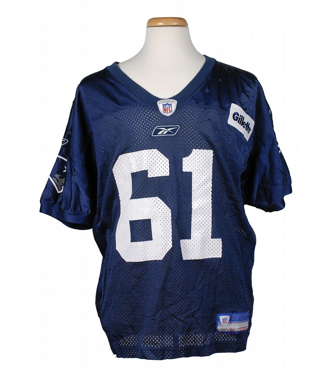 Terrific collection of ten practice-worn New England Patriots official Reebok practice jerseys from the dynastic Patriots squads of the early 2000s. Jerseys and years are: J. R. Redmond (2002), Tebucky Jones (2000), Benjamin Watson (2005), Lonnie Paxton (2002), David Patten (circa 2001), Matt Chatham (2000), Otis Smith (2002), Patrick Pass (2002), Stephen Neal (2002), and Jarvis Green (2002). Also includes a red mesh Craig James practice jersey (circa mid-1980s). All exhibit expected moderate to heavy wear from frequent use and were acquired directly from the Patriots at a 'tent sale' at Gillette Stadium in August 2013 (with the exception of the Craig James, which came from a private collection). Many retain their attached tags, reading: "This jersey is certified as Player Worn. The jersey was taken directly from locker room storage and processed by our staff. Owning an item from the ProShop Game Worn Collection is owning a piece of New England Patriots history."