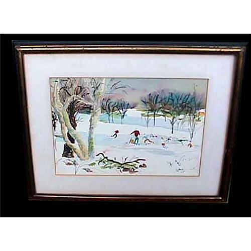 <tr><td>Title:New England Winter Snow Ice Skating Painting wc</td></tr>