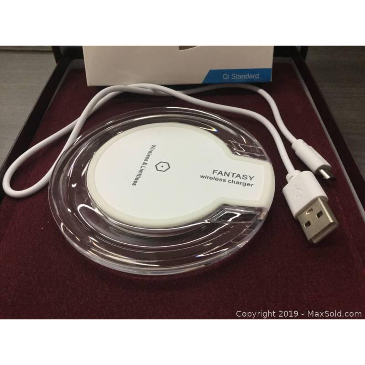 Fantasy Qi Standard Wireless Phone Charger, Just Set Your Phone on the pad and charge. Includes Fast Charging Speed, Low Temperature, and built in Safety features. See pictures for further inspection.