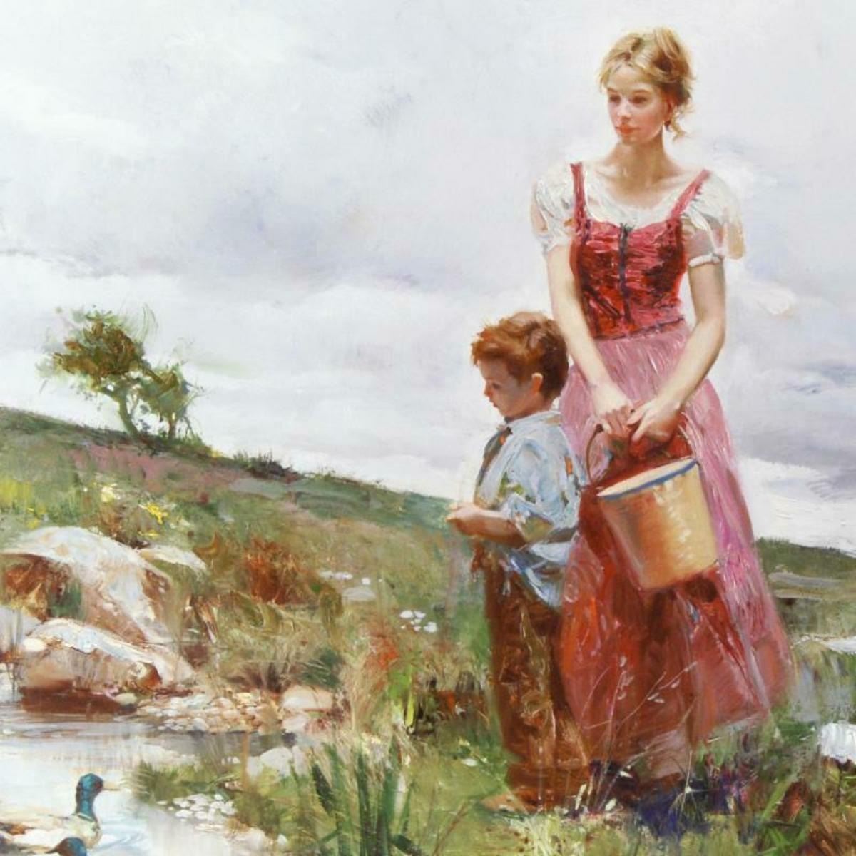 "New Friends" is a limited edition giclee on stretched canvas that has been hand-embellished by Pino himself, Numbered and Hand signed by Pino (1939-2010). Includes Certificate of Authenticity. Measures approx. 40" x 30" (image).