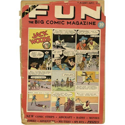 <B>New Fun Comics #1 (DC, 1935) Condition: PR.</B></I> This is a complete copy of the first DC comic book! It's the first issue of the series that became <B>More Fun Comics</B></I>, and it's ranked among the 25 most valuable comic books by Overstreet despite the fact that Overstreet doesn't list NM- or VF/NM values for the issue. While we're all particular about condition, a Gerber "8" with this much historical significance is a comic that's impossible to ignore! This copy's cover is detached and split, and the pages are brittle. There's a one-inch tear through the bottom of the whole comic. Included with this lot is a letter from a restoration expert to a previous owner, detailing the possible restoration measures that could conceivably be taken in the future. Overstreet 2005 GD 2.0 value = $6,650.