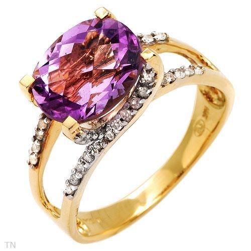 New & Stunning Ladies Genuine DIAMOND & AMETHYST Ring "3.68ctw" 14K Yellow Gold sz 6</em></td>
