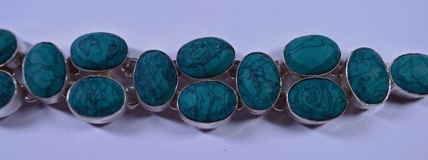 New German Silver Bracelet with Syn Turquoise. 7" long