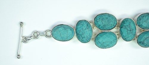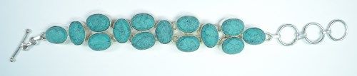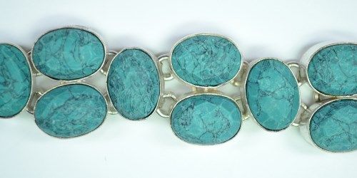 New German Silver Bracelet with Syn Turquoise. 7" long