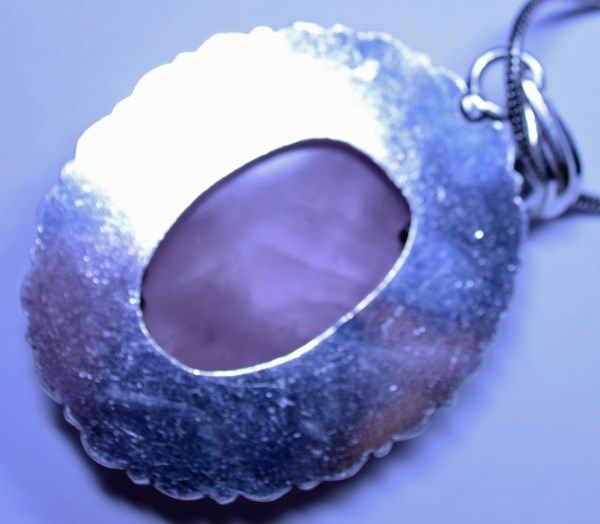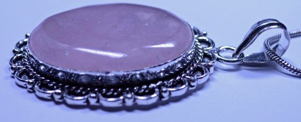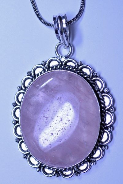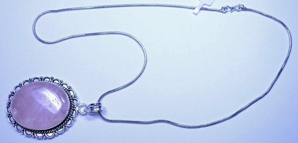 New German Silver Pendant with Rose Quartz, Chain is 20"