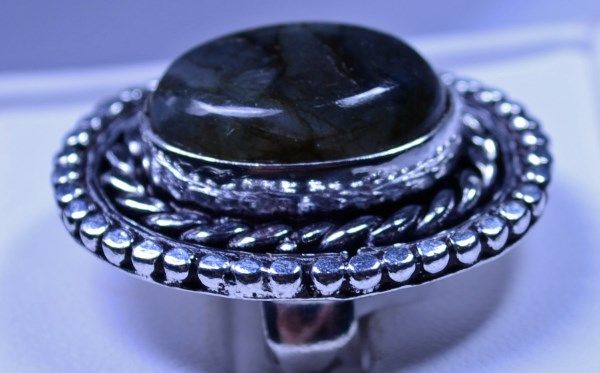 New German Silver Ring, Labradorite, Size 6