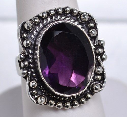 New German Silver Ring, size 6 Purple Stone