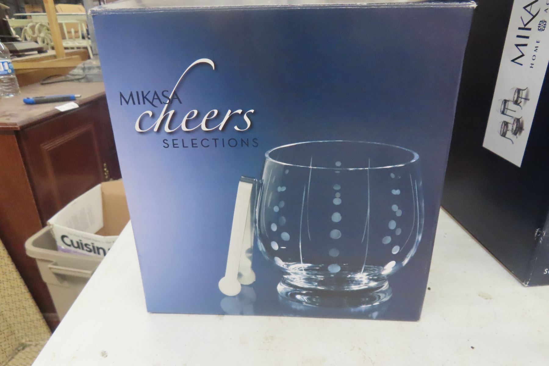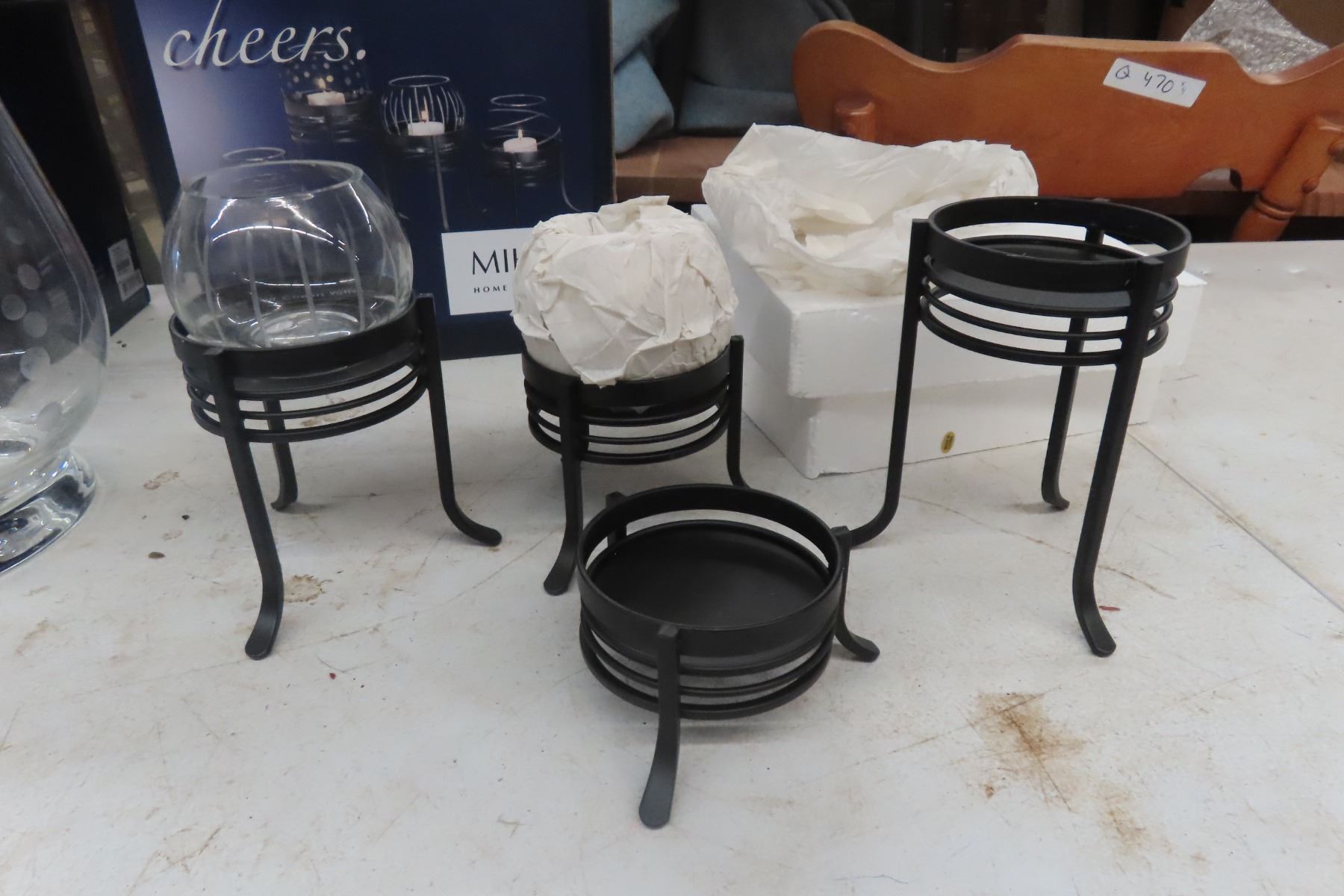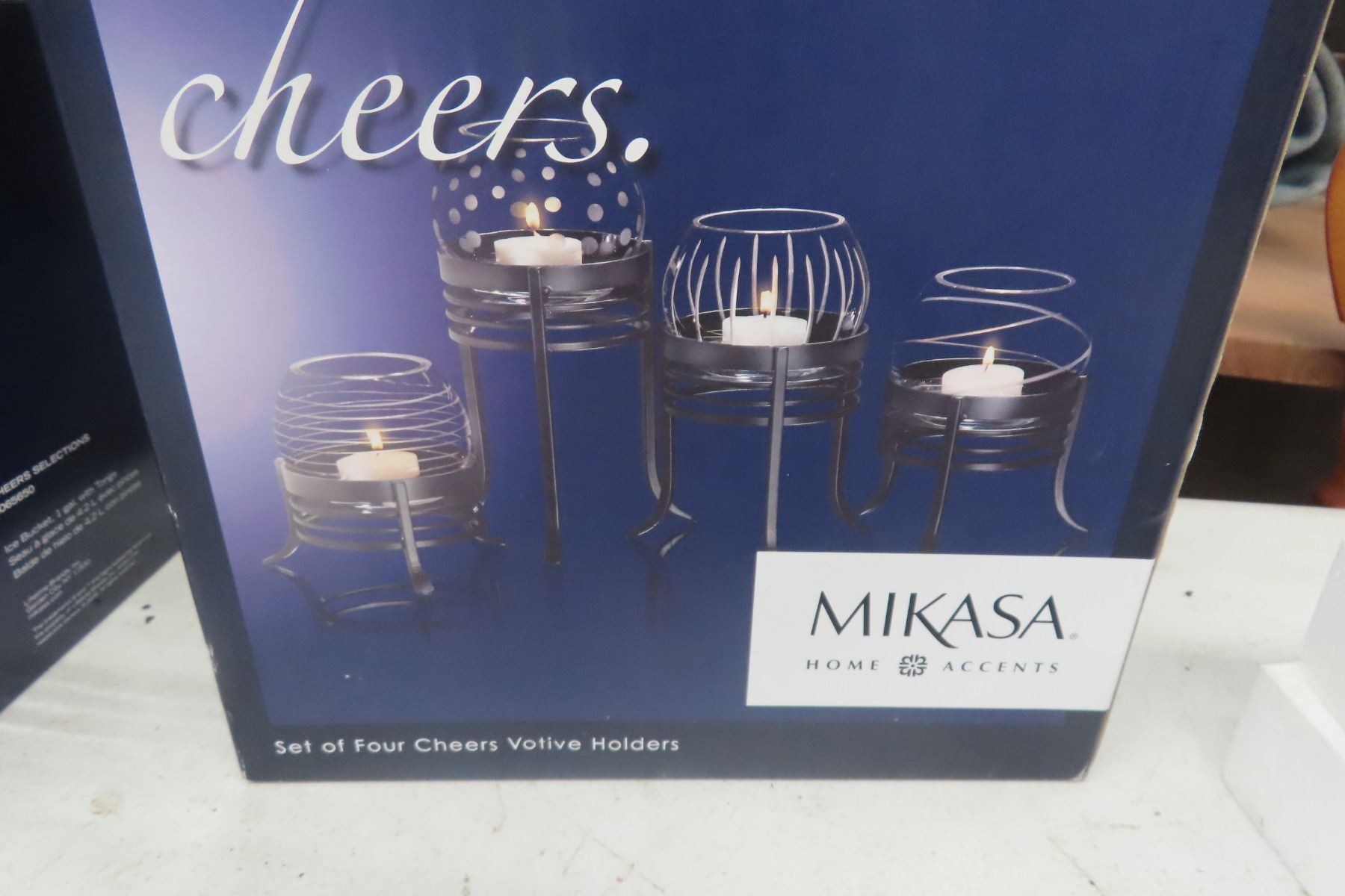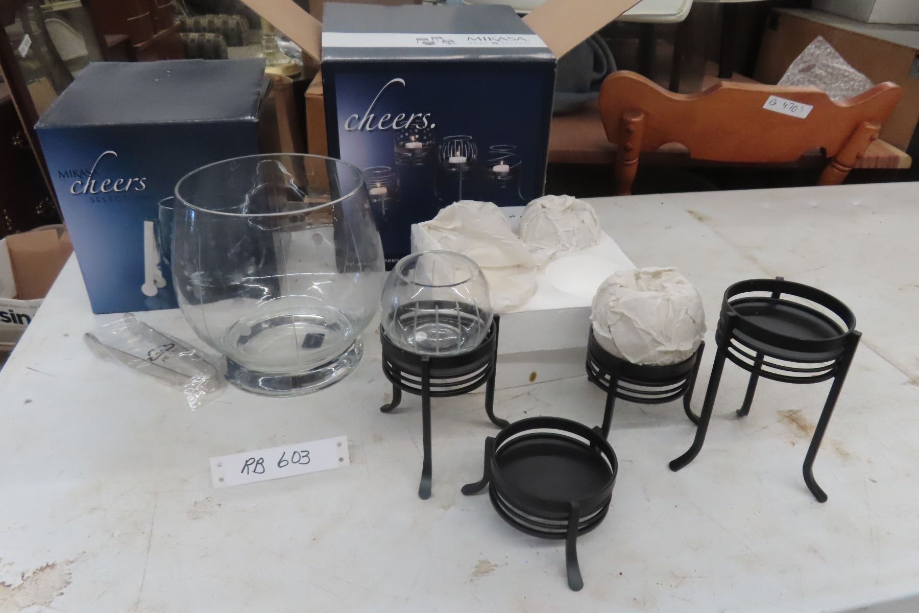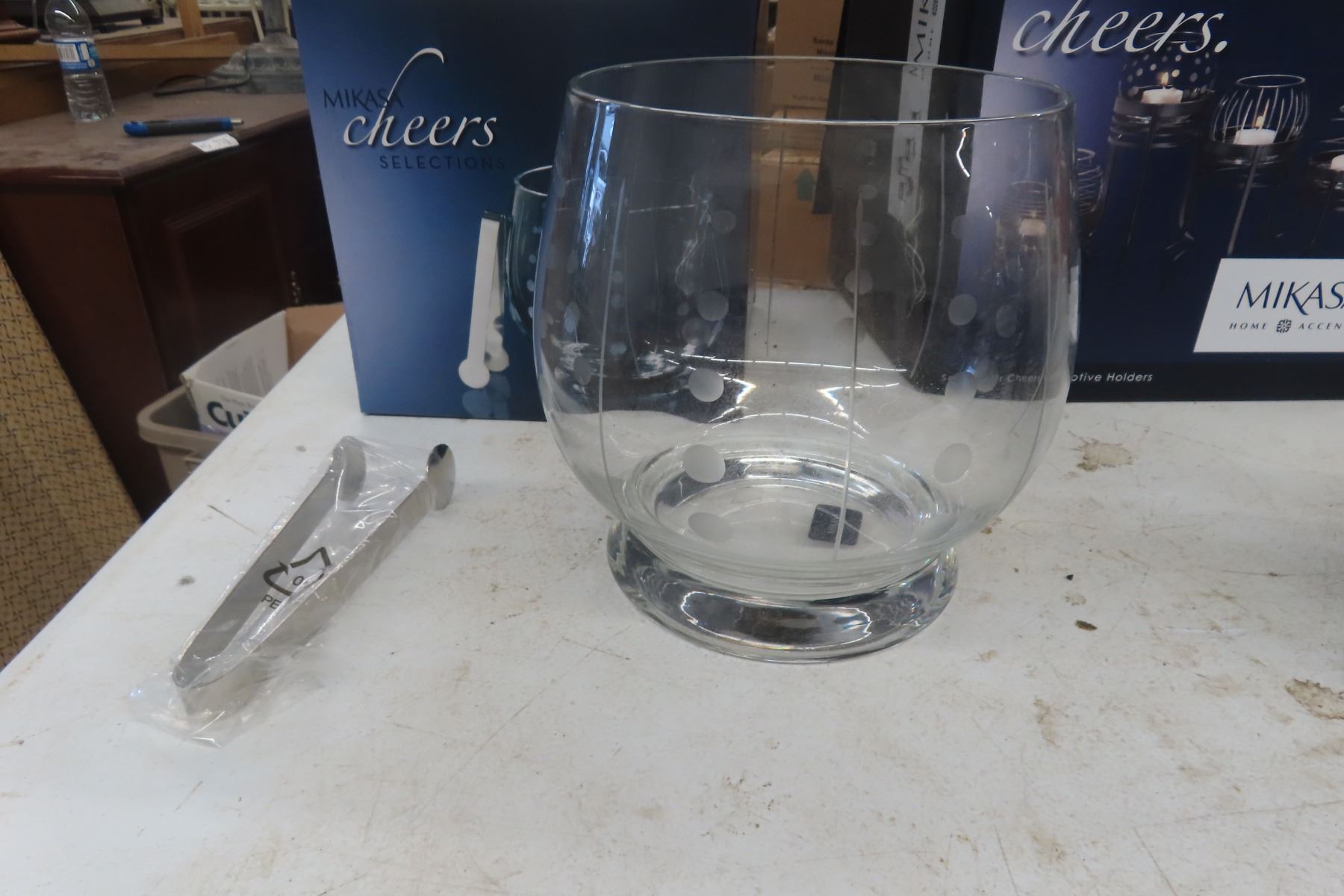 New Glass Ice Bucket with Tongs and 4 Candle Holders
