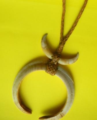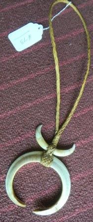 New Guinea Necklace 16 inches bores tusk and fiber about WWII, One tusk has hair line crack. Shipping $15.00