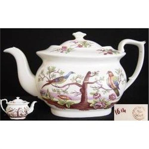 New Hall Teapot From The A De Saye Hutton Collection Pattern Number 1614 c1820 Decorated With Stylized Birds Sitting In A Tree And Flowers On A White Ground Knob Of Lid At Fault
