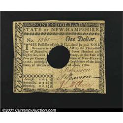 New Hampshire April 29, 1780 $1 Extremely Fine.<p>Hole canceled as almost always, with a nickel-size hole. The note is otherwise rather pleasing. It was previously Lot 104 from Pine Tree's May 1974 auction. Important notice: We expect to be auctioning lots at the rate of 200-250 per hour. Sometimes eBay Premier live bid software cannot keep up with that pace, so we strongly recommend that you place a realistic proxy bid now as insurance to avoid disappointment. Also please note that all Heritage/CAA lots purchased through eBay Premier carry a 20% Buyer's Premium.