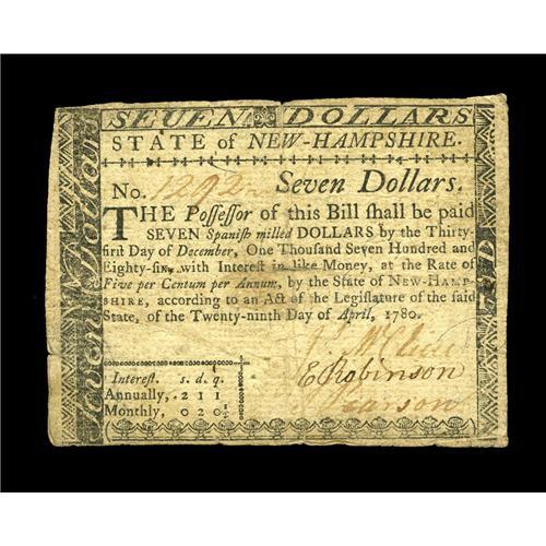 New Hampshire April 29, 1780 $7 Very Fine. Fully signed New Hampshire April 29, 1780 $7 Very Fine.