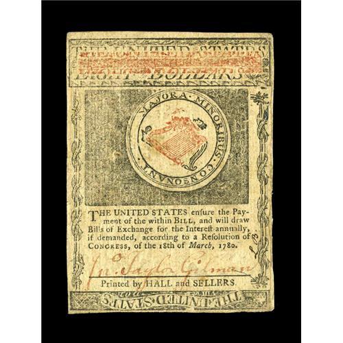 <B>New Hampshire April 29, 1780 $8 Very Fine-Extremely Fine.</B></I> One of the nicest uncanceled guaranteed New Hampshires that we have seen in quite some time. All three signatures are good. The note has a bright orange serial number, and the margins are clear of the design at all points on both sides. The note shows only the barest traces of circulation and it has considerable claim to the full XF grade.