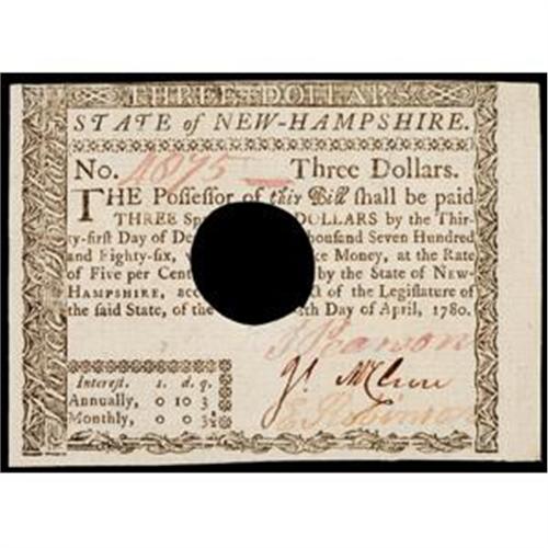 New Hampshire, April 29, 1780, "Guaranteed by the United States" issue, $3, Gem Crisp Uncirculated.