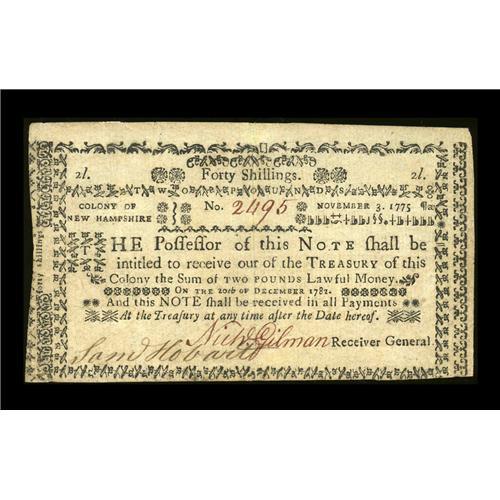 New Hampshire November 3, 1775 40s Choice Very Fine. Li New Hampshire November 3, 1775 40s Choice Ve