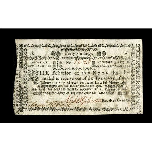 New Hampshire November 3, 1775 40s Extremely Fine. List