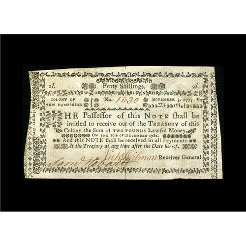 New Hampshire November 3, 1775 40s Extremely Fine.