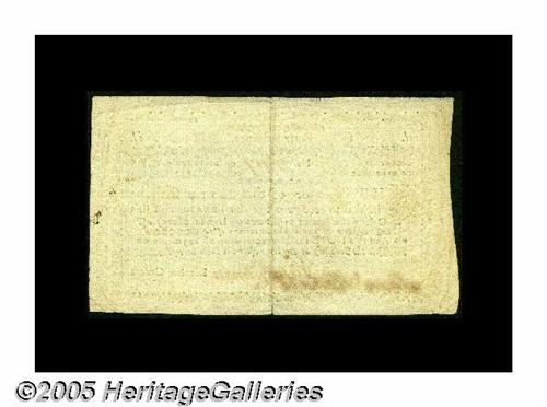 <B>New Hampshire November 3, 1775 40s Very Fine-Extremely Fine.</B></I> Forty Shillings notes of this emission are listed as contemporary counterfeits by Newman, but these notes were properly printed and signed in the shop of the man who printed the genuine notes. These notes have always been collected as avidly as the genuinely issued pieces, and this is a nice example. It is beautifully margined and clean. Also, the vertical center fold reveals approximate quarter-inch splits at each end. New Hampshire notes are the rarest of the original Thirteen Colonies (Vermont, the really rare one, was the fourteenth state.)