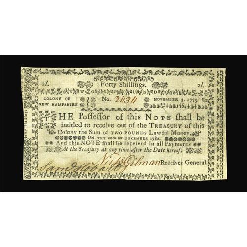 New Hampshire November 3, 1775 40s Very Fine-Extremely